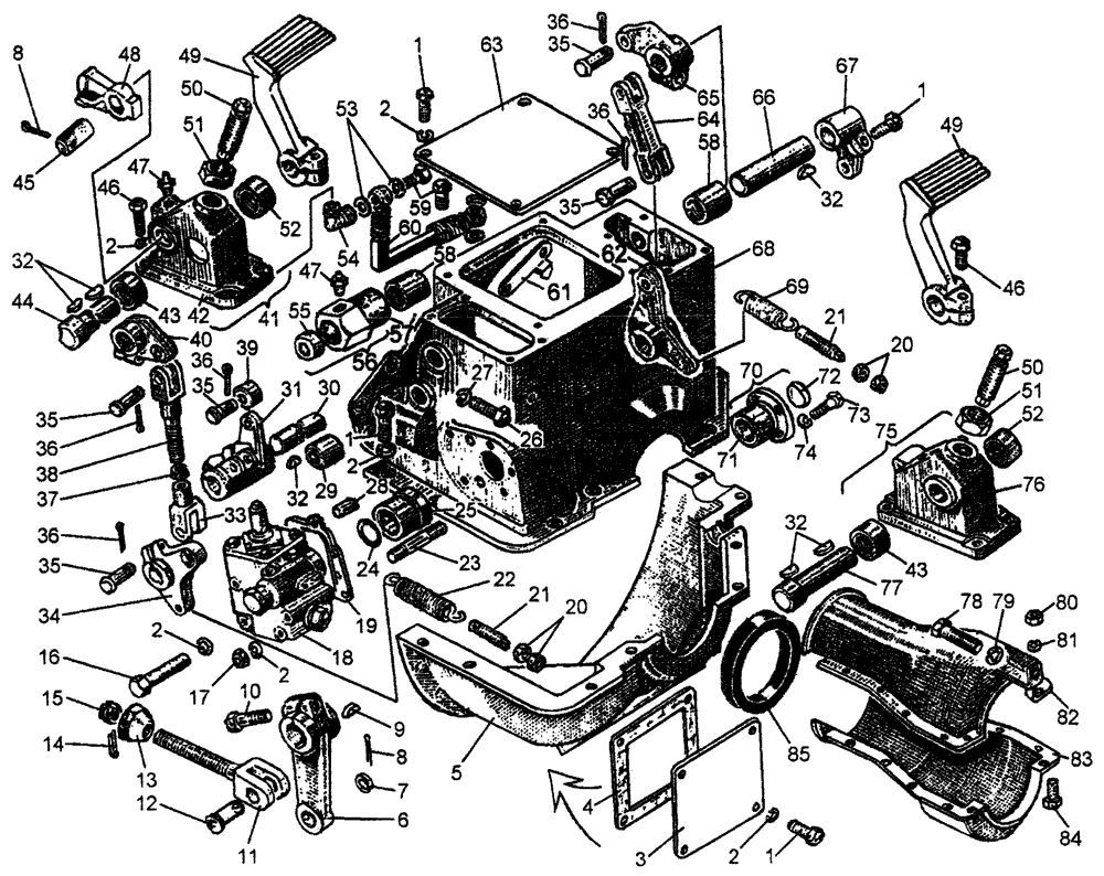 Механизм управления муфтой сцепления и стояночным тормозом для трактора Т10М с механической трансмиссией