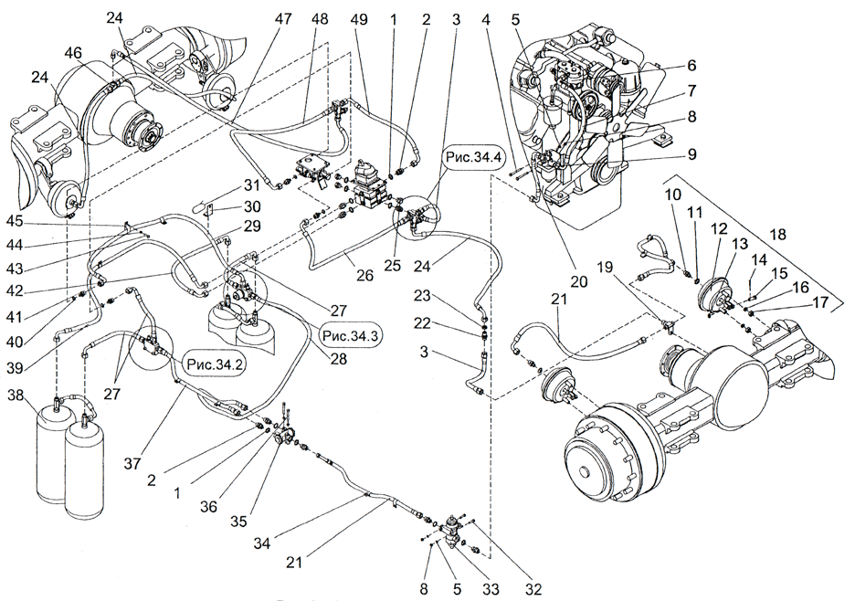 Рис. 34.4. Пневмосистема погрузчика ПК46