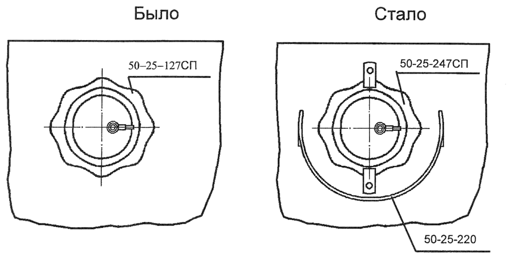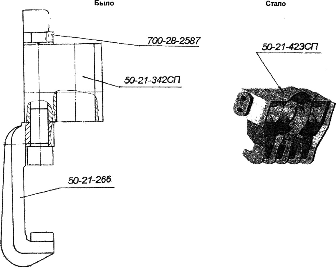 С целью снижения затрат и устранения литья разработано жесткое прицепное устройство сварной конструкции (64-51-218СП/СБ) взамен литой (50-51-118СП/СБ).