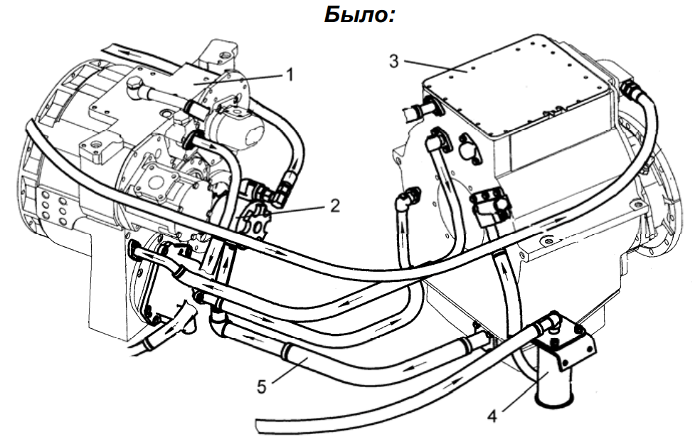 5 – трасса всасывания насоса НШ 50А-3Л рабочей жидкости из коробки передач.