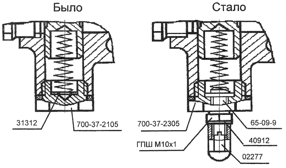 С целью снижения загрязненности масла в системе управления ГМТ во всех планетарных коробках переменных передач (ПКПП) введен клапан слива для замены масла после обкатки ПКПП на стенде и в процессе эксплуатации.